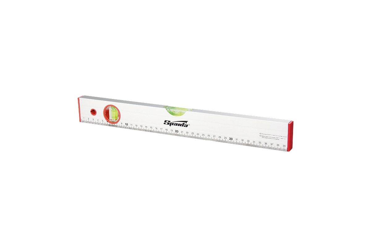 Уровень изготовлен из прямоугольного анодированного алюминиевого профиля. Имеет два пузырьковых глазка для проверки отклонений по горизонтали и вертикали. Точность измерений – 1 мм м (0,057 градуса).