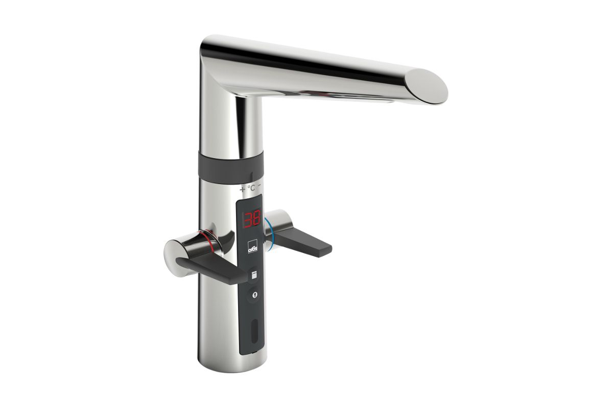 Температура воды при бесконтактной работе регулируется поворотом кольца между смесителем и изливом. Бесконтактная функция легко включается/выключается.