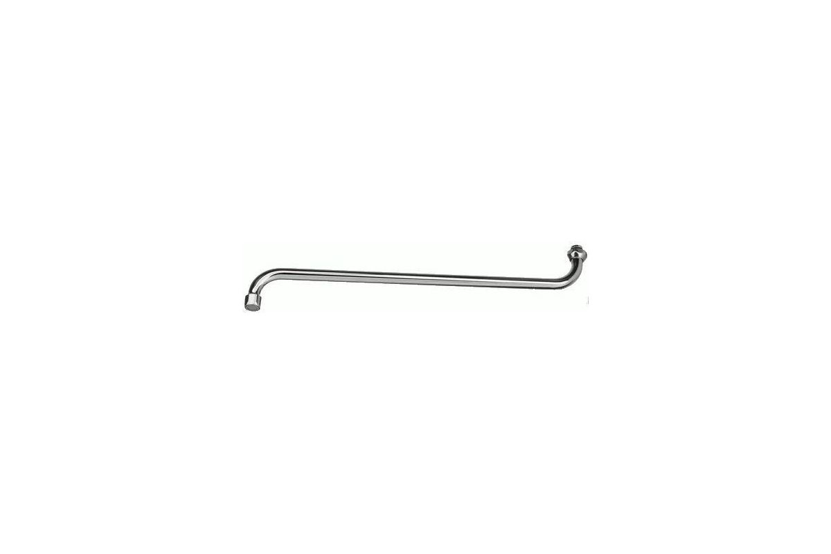 Излив круглый длиной 50 см для смесителя или для водопроводного крана еще часто называют носиком или гусаком является неотъемлемой частью устройства сантехники, в которую поступает отрегулированная до нужной температуры вода. Представляет собой составную часть смесителя или поставляется отдельно. В качестве неотъемлемых деталей к изливу прилагаются гайка и уплотнитель, его прямое назначение состоит в подаче воды из смесителя в ванну или раковину.