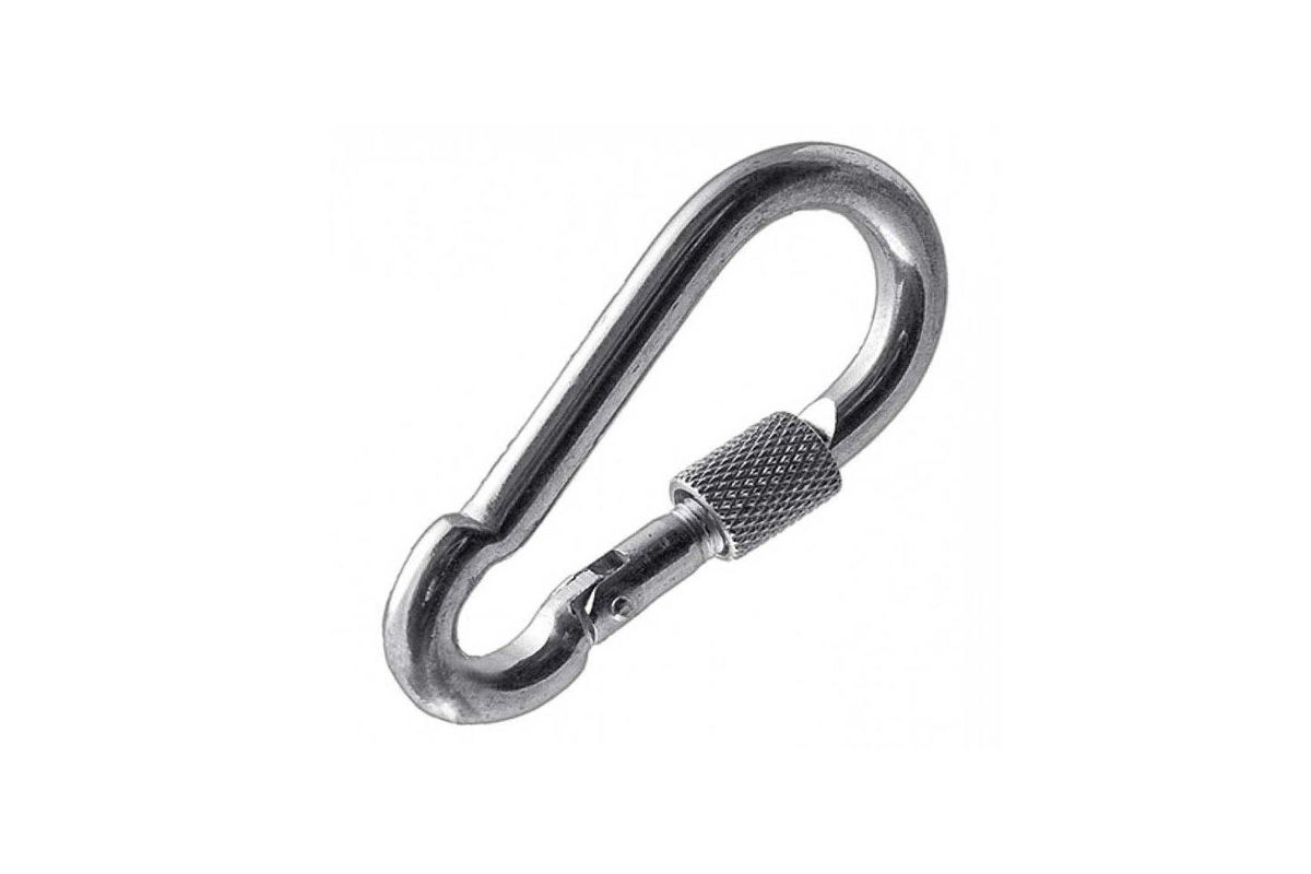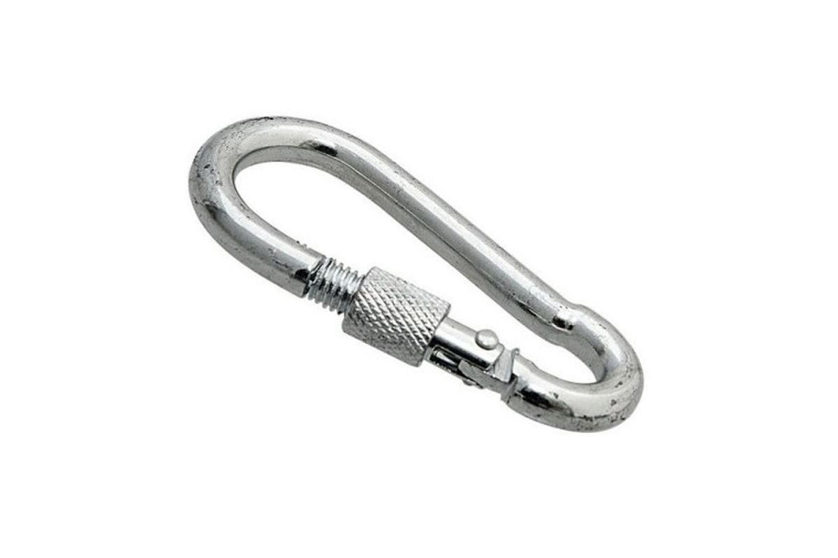- Стальной карабин DIN 5299D с винтовой муфтой (фиксатором) применяется для быстрого и надежного крепления тросов и цепей между собой или к чему-либо.