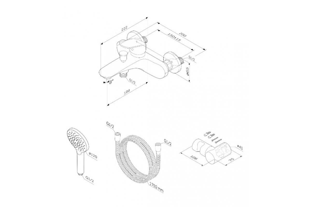 В комплекте душевой набор: стильный ручной душ 120 мм 3 режима настенный держатель с регулировкой угла наклона душевой шланг с защитой от скручивания.
